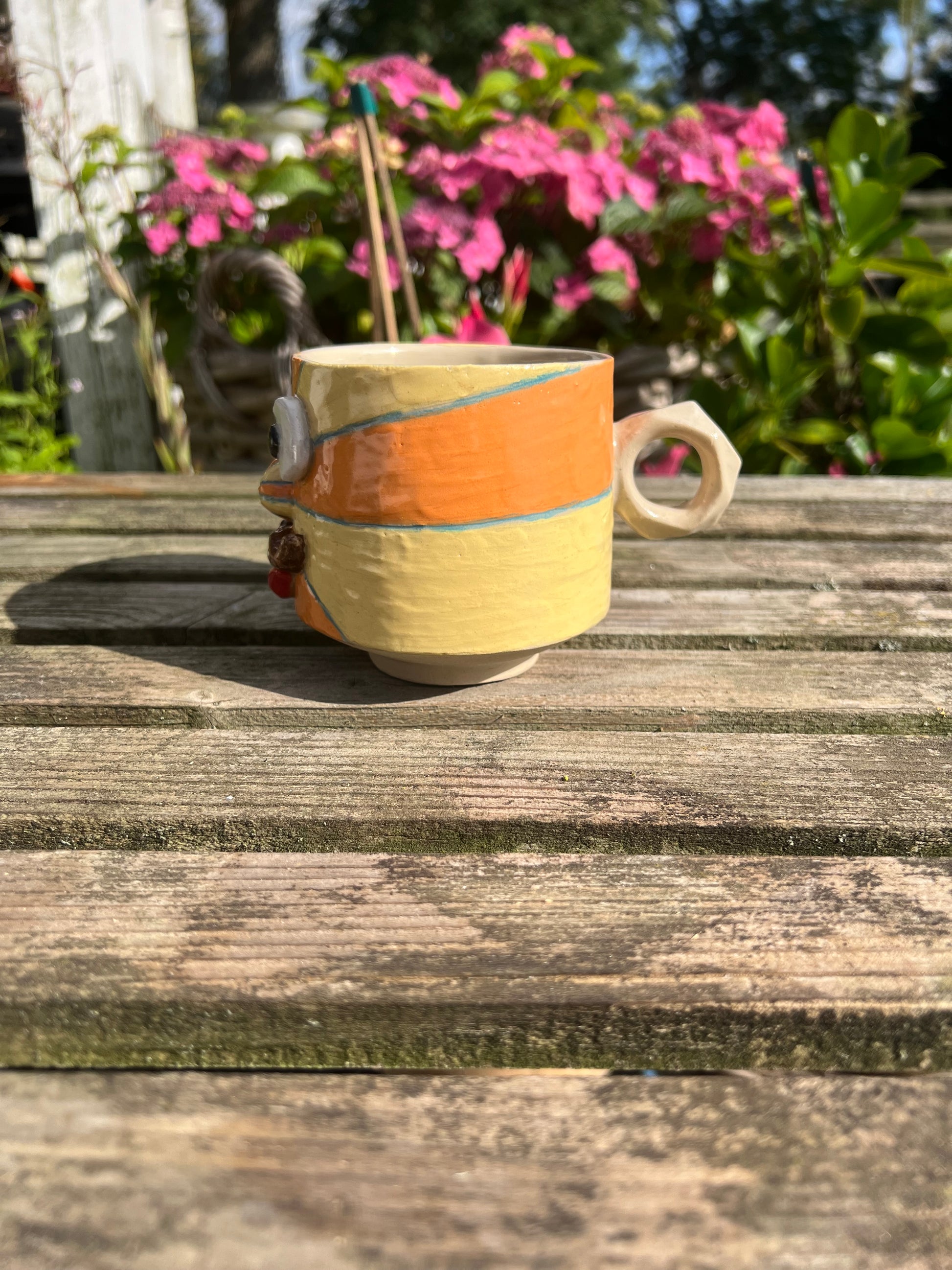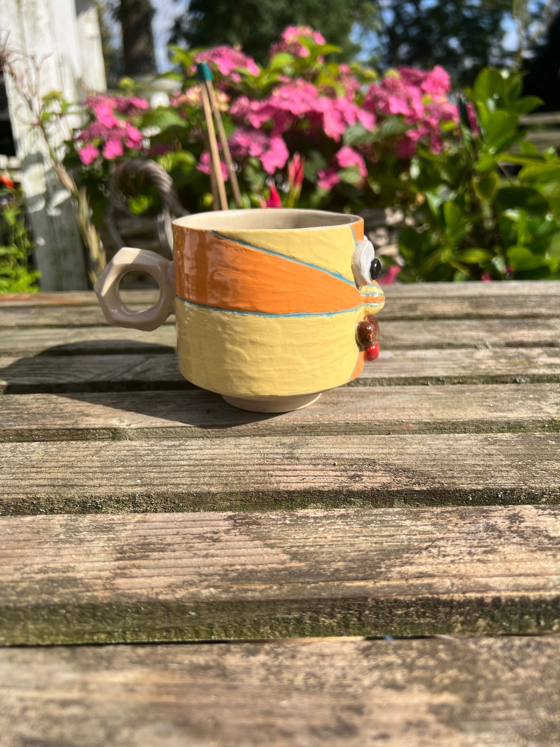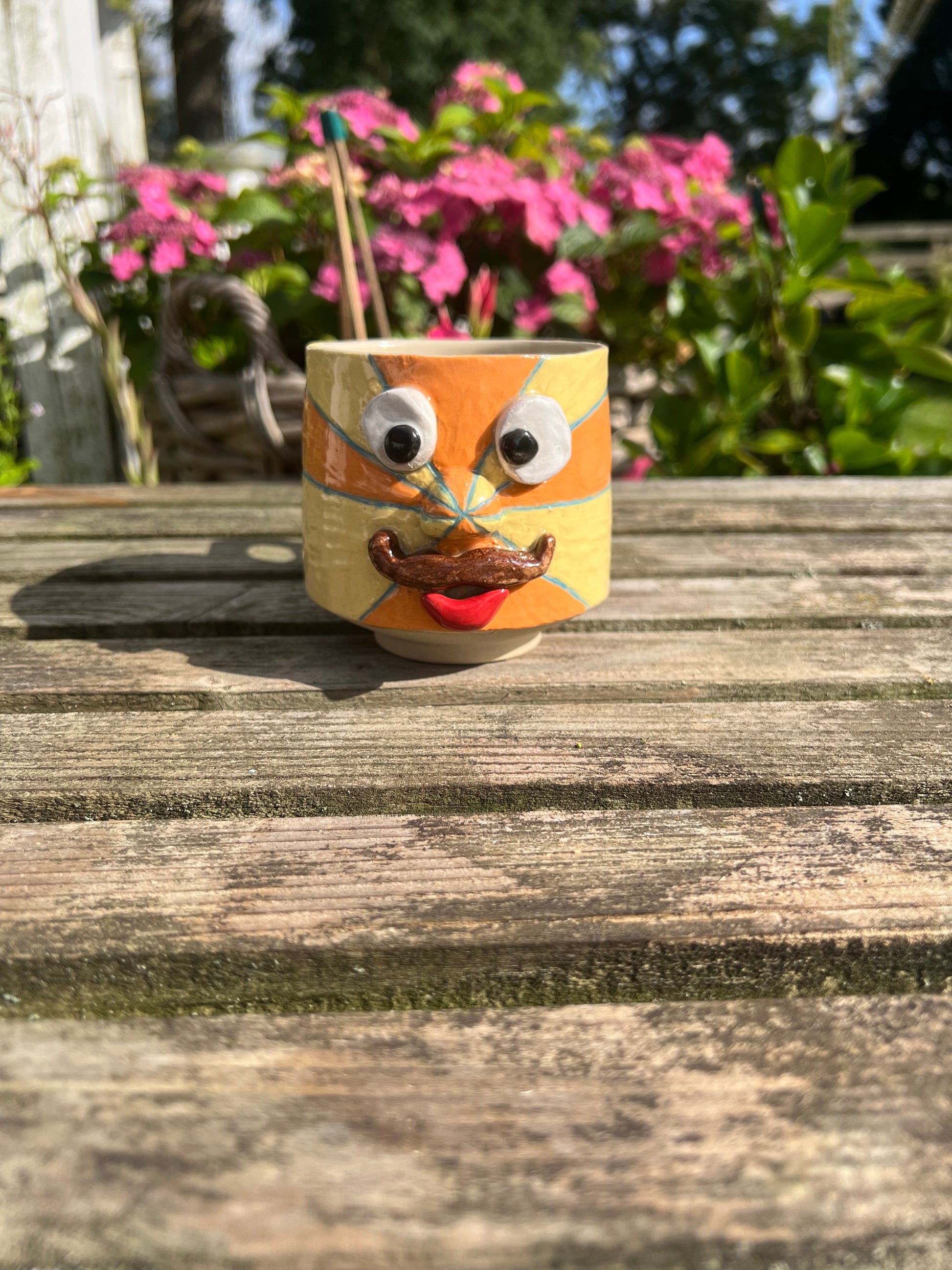 Unika kop i stentøjsler med finurligt ansigt. Rummer ca. 3 dl